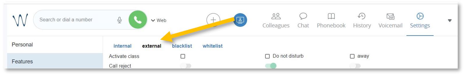 If you want to forward external calls - please click on external and activate it in the same way - or as needed.